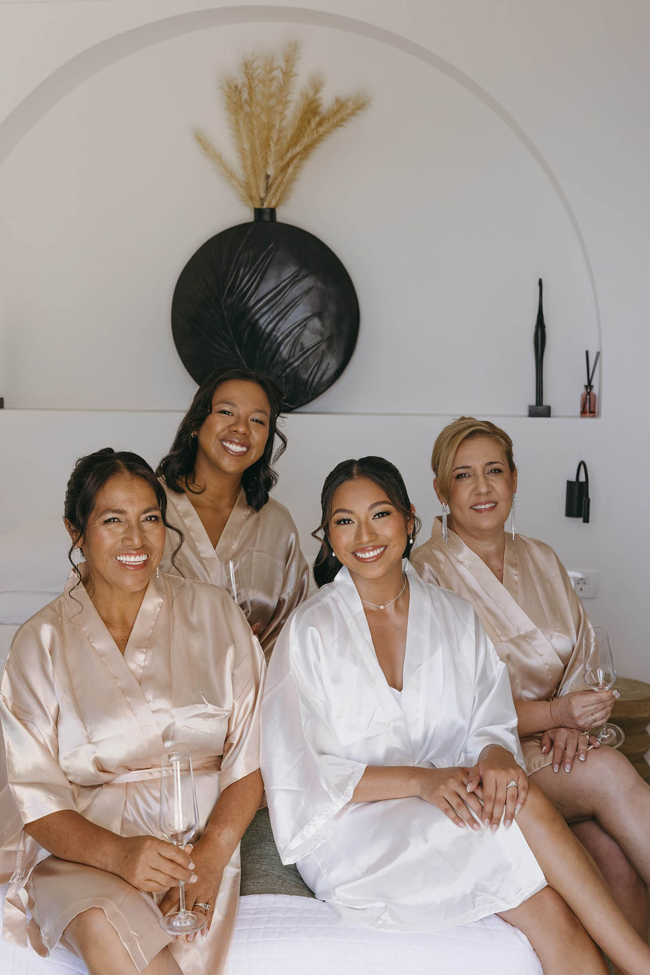For a bride, feeling beautiful and comfortable matters. Julia Popova, a gifted makeup artist in Santorini, brought out Janet’s natural radiance with a look that was polished yet unmistakably her. More than just her artistry, Julia’s gentle presence helped create a relaxed, joyful energy as the day began.
